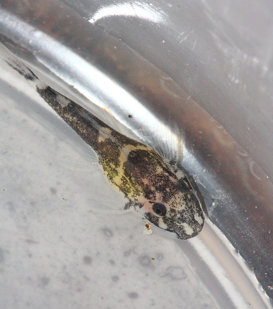Das war schon eine ganz Menge Larven, die jetzt in einem separaten Aufzuchtbecken immer noch mit Dottersack unter Steinen und Wurzeln sitzen.