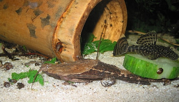 im selben becken bloss ein ancistrusmann,den ich schon längst hergeben wollte,aber so schlau ist,dass ich ihn bis heut,trotz beckenumräumen nie erwischt habe.