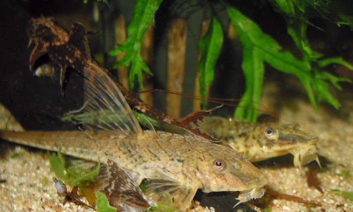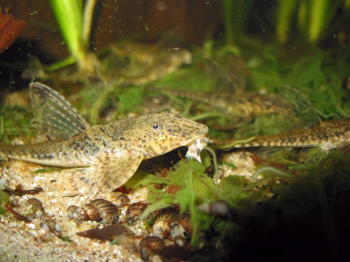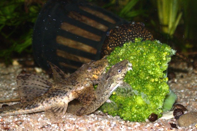 ein unfangbares Ancistrusweiberl und Corydoras leucomelas (die sich aber leider