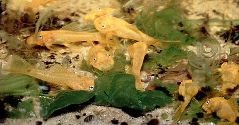 Albino-Ancistren als L 144 als Jungtiere angeboten bekam, bei denen die roten Augen