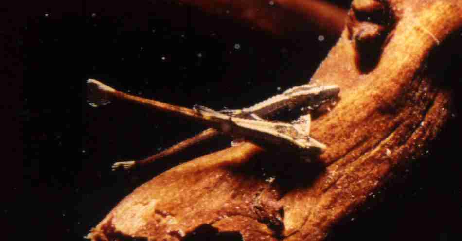 halten sich entweder senkrecht an den Blättern der Riesenvallisnerien auf,