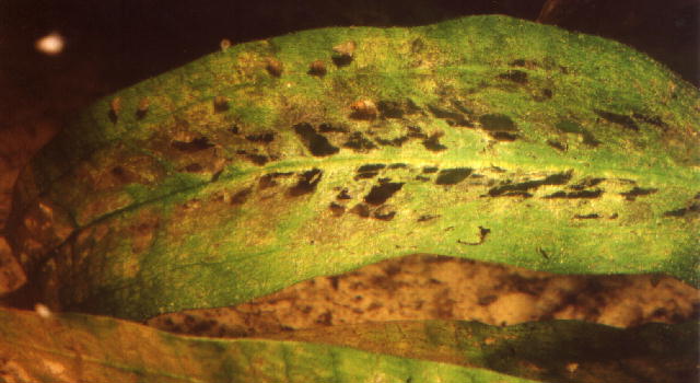 flachen Urwaldbächen, in denen Cryptocorynenteppiche mit ihren Blättern