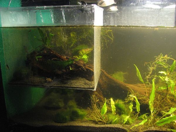 javafarn und mulm aus dem innenfilter hinter der matte.