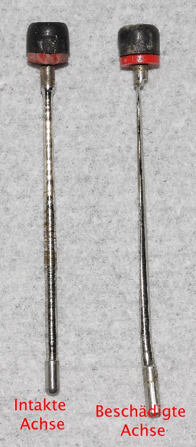 Achse, die in der Pumpe befestigt ist. Diese Achsen schleifen sich im Laufe des Betriebs ab und müssen erneuert werden.