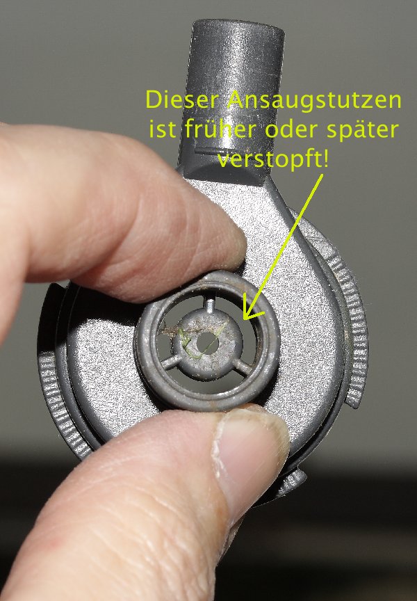 Nach einer Weile aber versiegt der Wasserstrom aus zunächst unerfindlichen Gründen. Wenn ich dann das Ansaugrohr herausdrehe und wieder einsetze, funktioniert der Wasserfluss wie vorher. Offenbar spielen Verkalkungen o.ä. da eine Rolle....